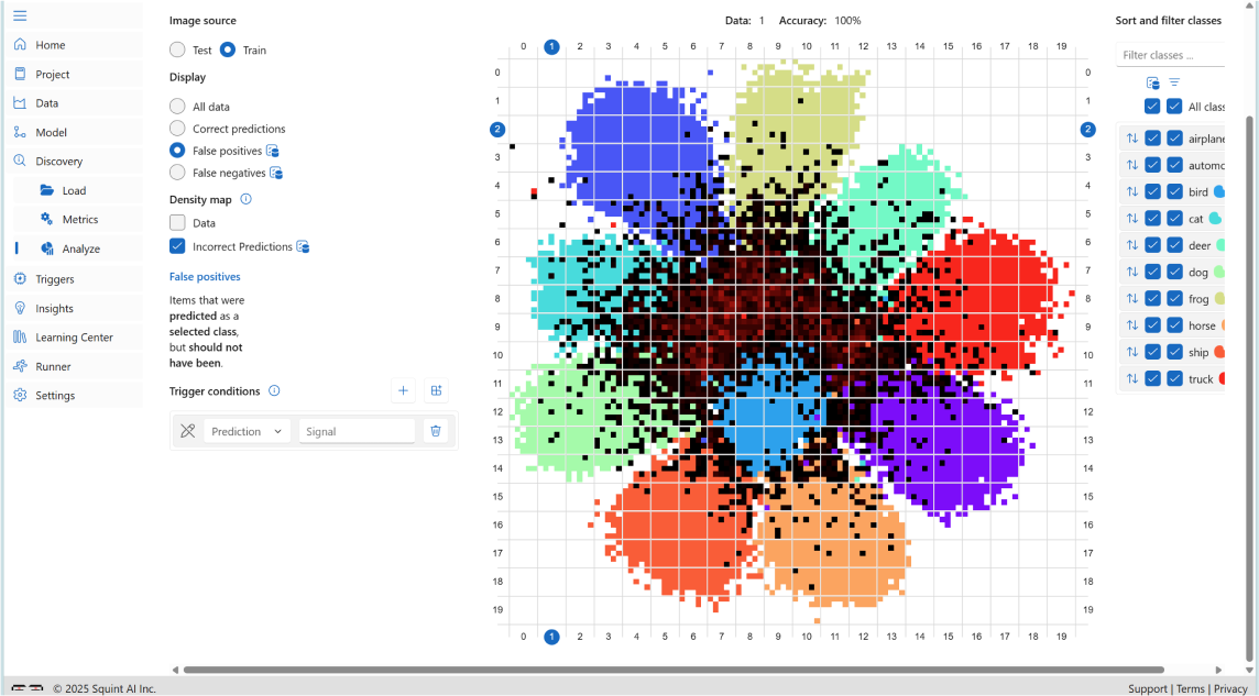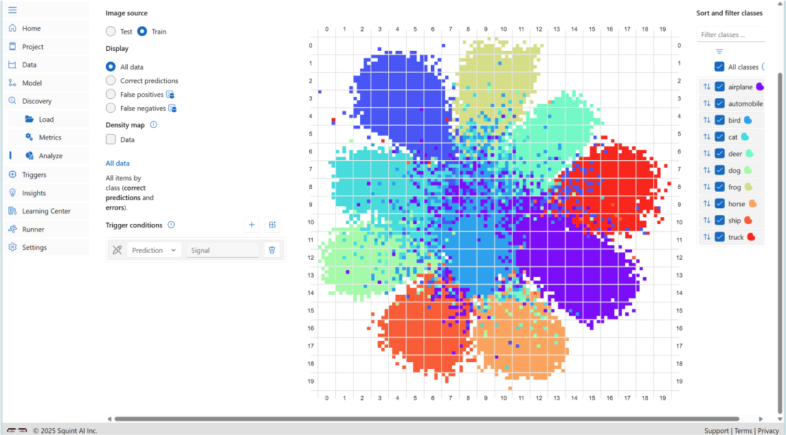 Squint Vision Studio enables deep semantic exploration of your model's embedding space. By visualizing how data points cluster and where errors occur, you can gain a clearer understanding of how your model perceives and organizes information. This insight is crucial for: